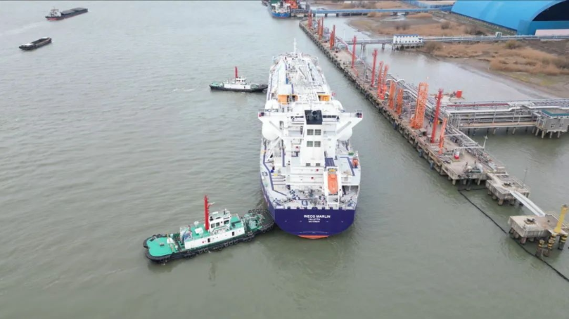 1月9日下午,2025年首艘5萬GT乙烷運輸船——英力士“龍”型LNG多用途液化氣運輸——英刀士“刀船“INEOSMARLIN”輪順利靠泊我市新浦化工碼頭。該輪船長231.57米,寬36.6米,載重噸高達51312.5噸,擁有四個C型獨立貨艙,是全球乙烷運輸領域的“王者”。
