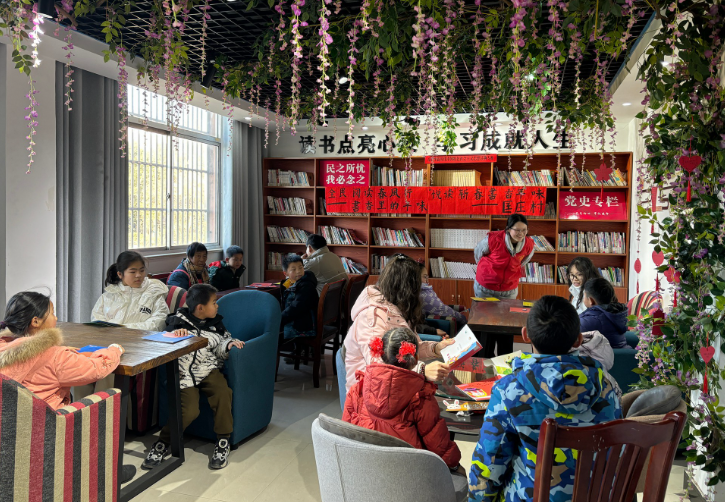 童潤書香,溫潤時光。為推動書香村居建設,讓傳統文化融入日常、涵養民風,張橋鎮依托農家書屋、新時代文明實踐點等陣地組織開展親子閱讀,豐富青少年的內心文化世界。1月16日,在圩港村農家書屋里,家長和孩子們圍坐在一起,聆聽志愿領讀人朱樂蔚帶來的童話故事,感受閱讀帶來的樂趣。