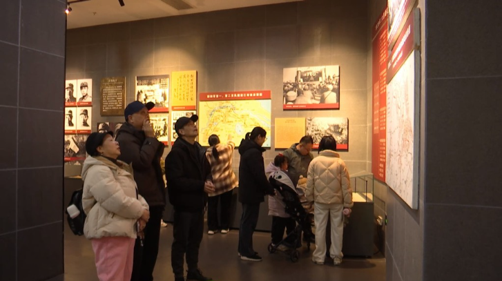 春節(jié)假期,在位于江蘇省泰州市泰興市的新四軍黃橋戰(zhàn)役紀(jì)念館,游客們凝視著一張張記錄著革命歷程的照片,仿佛穿越回了那段烽火連天的歲月。靖江人陳曉群在上海打拼多年,成立了自己的公司,早在春節(jié)前,他便把新四軍黃橋戰(zhàn)役紀(jì)念館定為首個(gè)打卡地。“我小時(shí)候生活比較苦,那時(shí)打仗更苦,很不容易,所以我要讓孩子們都過(guò)來(lái)看看,幸福來(lái)之不易。”
