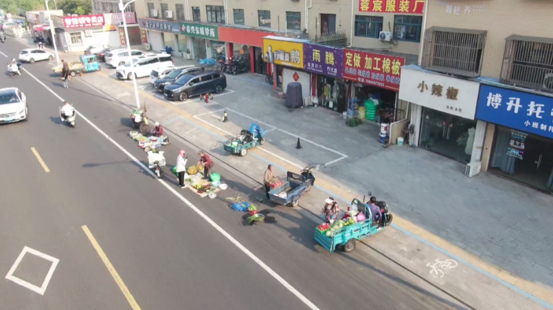 清晨6點的曾濤路,數十個攤位整齊排列在藍線內,攤主們正忙著售賣新鮮蔬果。7點30分一到,商販們自覺收攤離場,路面恢復整潔——這是泰興市創新設立的“潮汐便民疏導點”的日常場景。