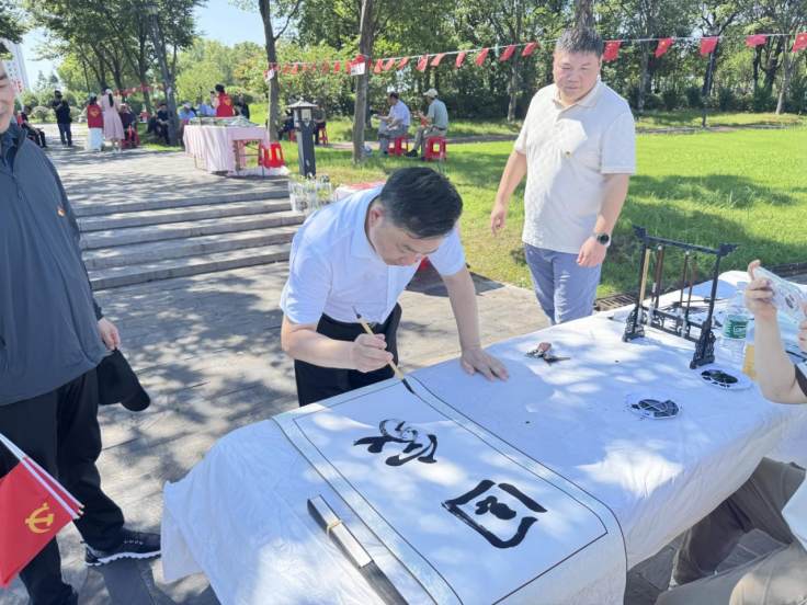 7月1日上午9時,虹潤濕地公園南邊的廣場上,鮮紅的黨旗迎風招展,50余名黨員整齊列隊,右手舉拳,在虹橋鎮黨委組織委員的領誓下,重溫入黨誓詞。鏗鏘有力的誓言響徹湖畔,拉開了同德村“黨建引領促振興 初心如炬耀征程“建黨節主題活動的序幕。 活動開始,虹橋鎮黨委組織委員馬華平結合《中央八項規定精神》和鄉村振興發表戰略講話。他指出:“同德村近年來在產業發展、民生改善等方面成效顯著,希望全體黨員以‘永遠在路上’的執著堅守初心,當好鄉村振興的‘排頭兵’。” 從萬達農業負責人生動有趣的蛻變歷程分享,到老年大學王老師有關《中央八項規定精神》的黨課學習,再到“農技+黨史”有獎競答,將現場的氛圍步步點燃,宛如我們長征路上的點點炬火,溫暖明亮,星火傳承。 活動中設置了“重走長征路”“廉潔正道闖關行”“合作顛球”等趣味游戲,讓現場的黨員、老干部們在游戲中回味過往,品味生活。無論是游戲內容,還是合作完成的過程,無一不在提醒著在場的同志們要銘記長征的堅韌、廉潔的必要,團結的必然。 農業的芬芳遠不止課本上的故事傳閱,更有勞作果實的品嘗。 活動中為黨員、老干部準備了紅米飯、南瓜湯,大家在美食中回味過去,更加堅信要將勤儉的美德傳承下去。 在書法老師的帶領下,大家揮毫書寫廉政格言,筆墨間字字鏗鏘,仿佛將廉潔的信念融入每一筆勾勒中,F場的盆盆君子蘭清雅高潔,“竹影清風”金箔畫熠熠生輝,二者相映成趣,正將一股清正之風悄然吹進每位黨員干部的心田,讓廉潔文化在墨香與光影中浸潤人心。 活動尾聲,同德村黨總支書記馬建文總結道,“我們將以‘一月一主題’為抓手,把黨史學習教育、廉政教育、技能培訓融入日常,讓黨員群眾在參與中受教育、得實惠。”下一步同德村將聯合萬達農業打造“紅色產業聯盟”“廉政采摘園”等特色項目,推動“黨建紅”與“鄉村美”深度融合。 從宣誓到競答,從游戲到體驗,這場別開生面的建黨節活動,讓初心更“亮”、使命更“實”、干勁更“足”,更是在多元形式展現黨員先鋒作用,激發了黨群共建熱情,推動村莊在產業、治理、文化等方面高質量發展,為鄉村振興注入“紅色動能”。 |