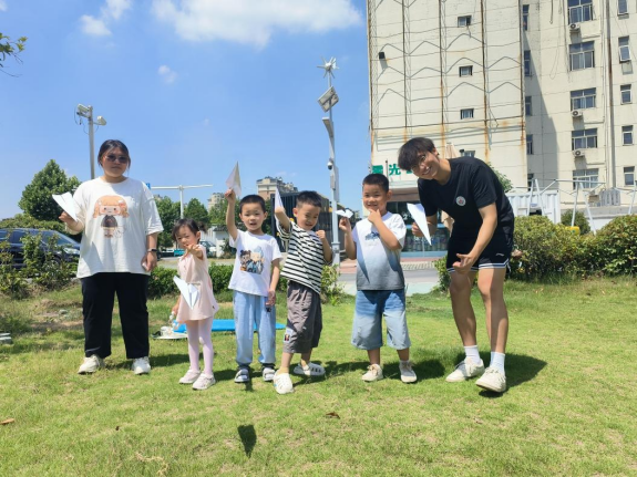 分區劃點講新知,戶外運動綻活力 在當地政府和未成年人關愛協會的共同支持下,實踐團于暑期赴泰興市的濟川街道北站社區、清水村、開綠村、騰興村和星光公益咖吧以及常熟市的琴南社區、錦荷社區、府東村、昆承村開展支教。7月7日實踐團成員們進行了開班儀式的宣講,主要形式為團隊的發展歷程、開設課程以及隊員介紹。 暫別教室的四四方方,去擁抱風的方向。最好的教室永遠是戶外,擁抱自然沐浴陽光不僅能放松心情,還能讓心靈得到安撫。戶外運動課上,各個點位的成員帶著孩子們腳步踏過草地,指尖沾染上陽光的溫度,呼吸間滿是草木的清新,汗水滴落的聲音與歡笑撞個滿懷。每一次奔跑、跳躍、探索,都是身體與自然的對話,是勇氣和成長的證明。