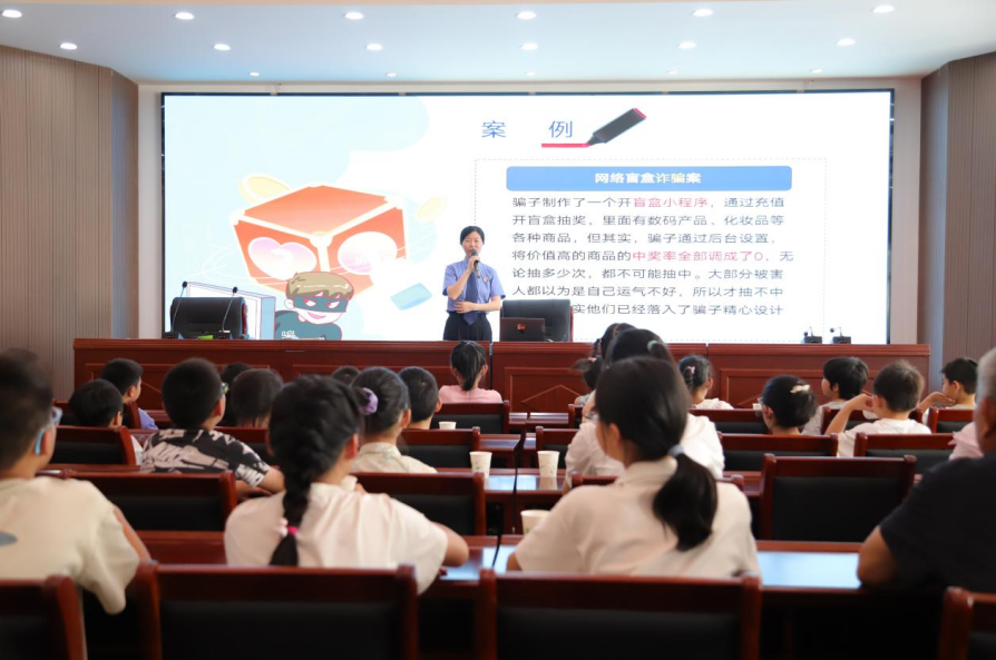 “若遇到網友索要地址,應如何應對?”“拒絕對方,并立即告知父母!”7月24日下午,延令街道東聯社區三樓會議室內,一只只小手高高舉起,孩子們以清脆童聲作出回應。“晶晶說法”負責人葉晶化身“網絡安全指揮官”,帶領小朋友們跨越一道道“網絡關卡”,爭做明辨是非的“網絡安全小衛士”。