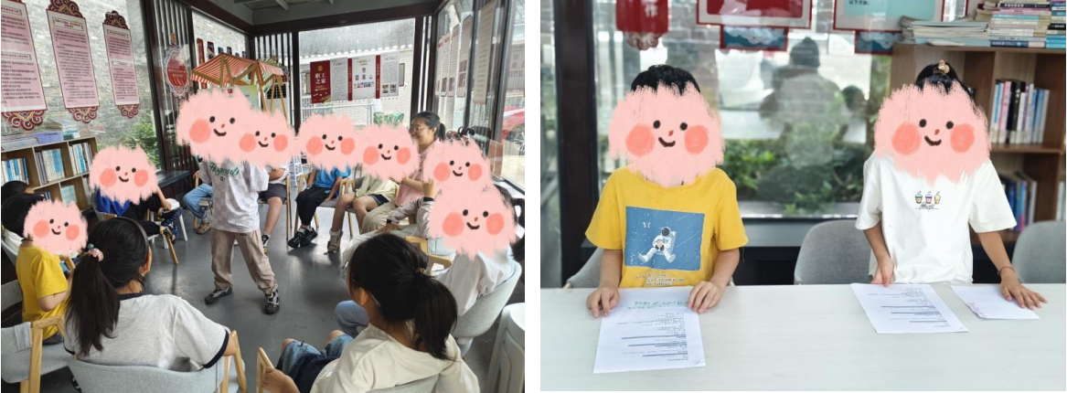 “擊鼓傳花”游戲中引入網(wǎng)絡(luò)安全快問快答;角色扮演環(huán)節(jié),兒童對昵稱“超級小明”的哄笑聲,反映出隱私邊界意識的萌芽;“就不這樣做”反向指令游戲訓(xùn)練兒童的應(yīng)變能力,激活了兒童參與熱情。工作人員結(jié)合“網(wǎng)絡(luò)安全小偵探”案例推演,引導(dǎo)組員對網(wǎng)絡(luò)詐騙問題進(jìn)行討論回答,結(jié)合網(wǎng)絡(luò)安全主題貼紙的獎勵,提高兒童防詐騙識別準(zhǔn)確率。 三、社會化情景,賦能深度認(rèn)知