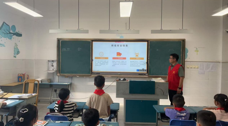 網路安全進校園,講好開學第一課。“孩子們,你們平時在家會經常玩手機嗎?”課堂一開場,長生社區的志愿者丁燦就拋出一個“靈魂拷問”,瞬間抓住所有人的注意力。活動中,丁燦結合小學生日常上網場景,把知識點變成一個個“生活考題”:聊到“網游時長”,他明確告訴大家“每周最多3小時,只能在周五到周日玩”,還提醒“別想著用爸媽賬號繞開防沉迷”;講到“網絡主播”,直接給出答案“未滿16歲不能注冊賬號”,讓大家清楚法律邊界。