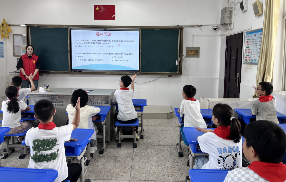 活動(dòng)中,“愛(ài)潤(rùn)濱江”志愿者以PPT演示為主要形式,結(jié)合學(xué)生群體的認(rèn)知特點(diǎn)和上網(wǎng)習(xí)慣,從“網(wǎng)絡(luò)的雙面性”“個(gè)人信息保護(hù)”“網(wǎng)絡(luò)安全防范”三個(gè)維度展開(kāi)講解。在“網(wǎng)絡(luò)的雙面性”環(huán)節(jié),志愿者通過(guò)貼近學(xué)生生活的案例,直觀展現(xiàn)網(wǎng)絡(luò)帶來(lái)的便利;同時(shí)結(jié)合“未成年人沉迷網(wǎng)游”“不良信息誤導(dǎo)價(jià)值觀”等典型事例,讓學(xué)生清晰認(rèn)識(shí)到不當(dāng)使用網(wǎng)絡(luò)的危害,引導(dǎo)大家樹(shù)立“合理用網(wǎng)、健康用網(wǎng)”的理念。