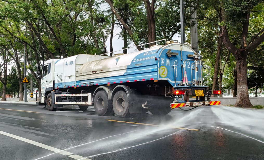 近日,在泰興城區(qū)的羌溪路上,工作人員沈益慧駕駛灑水車伴著熟悉的音樂緩緩前行,同路段環(huán)衛(wèi)工人手持工具細(xì)致清掃,二人身影勾勒出道路保潔的日常圖景。