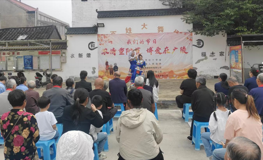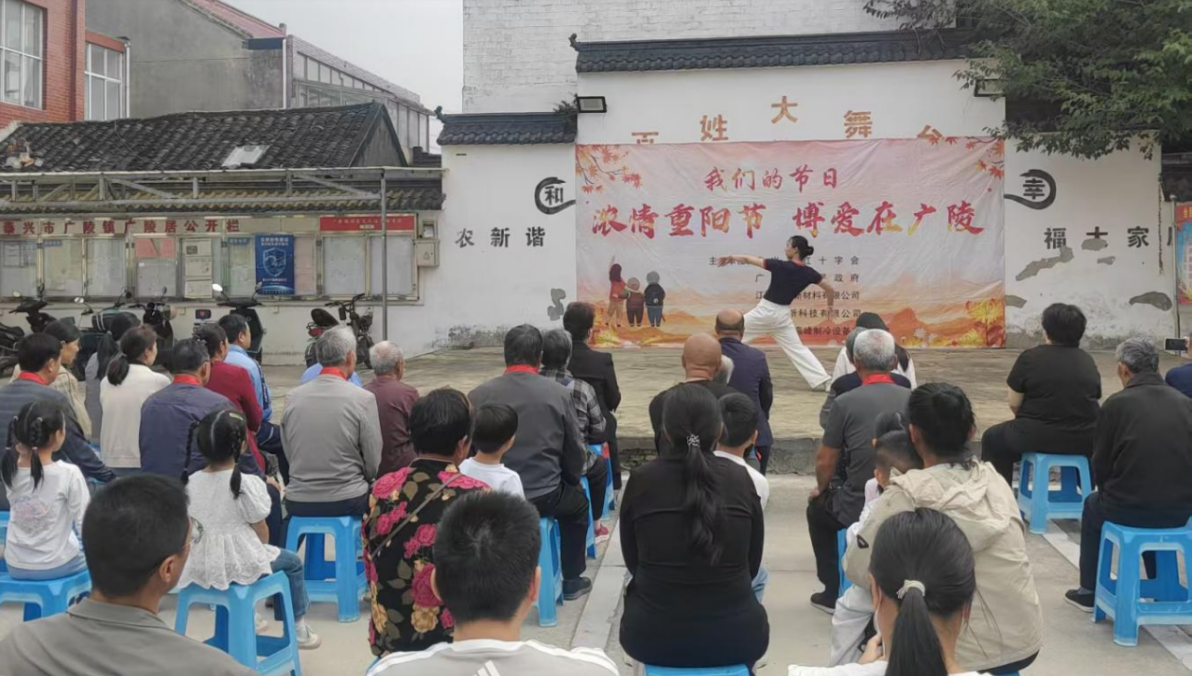 重陽節來臨之際,廣陵鎮宣傳科聯合泰興市紅十字會、鎮中心幼兒園、鎮衛生院、新聯會、鎮區部分企業等多部門多單位,共同開展了一場的重陽節表演慰問活動,為鎮內老年人送去節日祝福與關懷,弘揚尊老敬老的傳統美德。