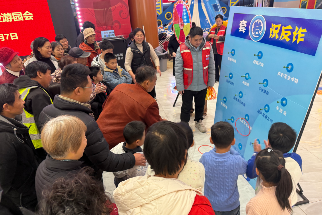 趣味游戲,筑牢安全“防火墻” 在黃橋大夢想城內,泰興市黃橋鎮琴韻社區設計了一場與眾不同的趣味反詐活動。活動創新采用“套圈識反詐”的互動形式讓居民在游戲中學習防騙知識。活動現場,一個個標注著“刷單返利”“網絡兼職詐騙”“冒充客服”等字樣的標識牌整齊排列。參與者套中哪個“詐騙陷阱”,琴韻社區志愿者便結合真實案例講解該手法的套路與防范要領。不少居民一邊瞄準投圈,一邊討論著身邊聽過的類似騙局,在互動體驗中加深了對詐騙伎倆的認知。“原來接到謊稱退款的電話有這么多講究,這下可算弄明白了!”成功套中“冒充客服”標識的李大爺笑呵呵地說道。