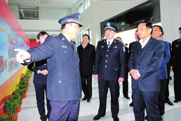 會前,張育林一行參觀了2016年全市公安工作成果展。