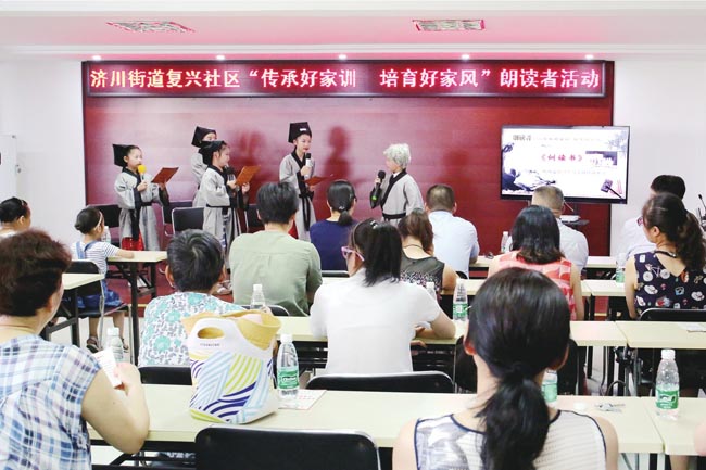 (記者 蔡震鳳)日前,由濟(jì)川街道主辦的“朗讀者”讀書沙龍活動(dòng)在復(fù)興社區(qū)舉行。活動(dòng)以“傳承好家訓(xùn),培育好家風(fēng)”為主題,吸引了各社區(qū)近100位讀者參加。據(jù)了解,本次“朗讀者”活動(dòng)是濟(jì)川街道“鄰里守望”社區(qū)文化節(jié)活動(dòng)之一,旨在帶動(dòng)全街道社會(huì)閱讀新風(fēng)尚。