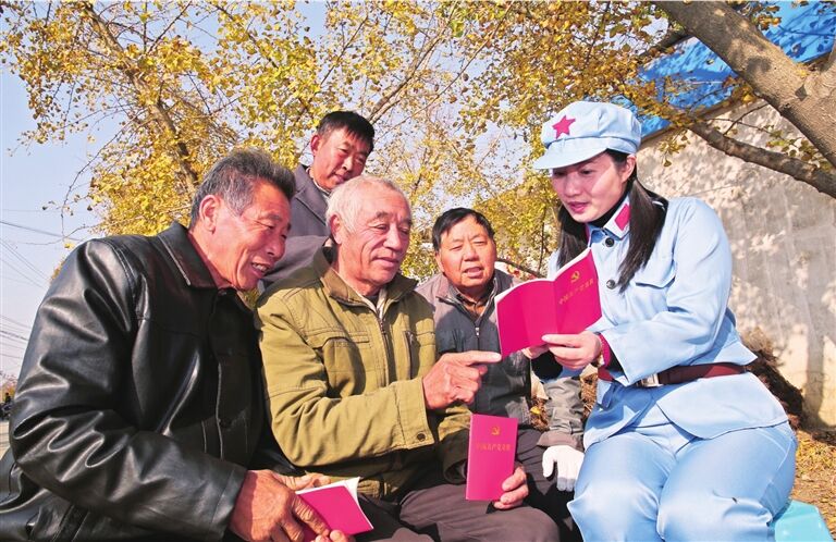 緊扣十九大精神宣講 冬日的陽光伴著飄舞的銀杏葉,簡陋的舞臺上人們穿梭忙碌著,雖然條件略顯艱苦,但大家的工作熱情絲毫沒有減少。 九點鐘,“泰興廣電主播誦讀十九大”活動正式開始,由廣播電臺的主持人們自編自導自演的《誦讀十九大報告》節目拉開了演出的序幕。節目選取“十九大報告中與農村百姓生產生活相關的內容,原文朗誦,原汁原味。村民們也結合自身所學所感,說出了老百姓對新時代新征程的美好憧憬。 ——“中國特色社會主義進入新時代,我們的黨一定要有新氣象、新作為,全面推進黨的政治、思想、組織、作風、紀律建設,那新時代我們黨要把什么建設擺在首位呢?” ——“黨的政治建設” 活動還設置了互動問答環節,現場觀眾在緊張而充滿樂趣的互動搶答中學習知識、了解政策。 觀看完整場宣講的宣堡鎮銀杏村村民李留貫說:“泰興廣電主播走進我們基層農村,通過通俗易懂的形式,讓我們老百姓能夠學深學透十九大報告精神,我們希望多舉行這樣的活動,既豐富我們的生活,又能讓我們學好黨的政策。” 傾情演出激發群眾奮斗熱情 形式多樣的文藝演出贏得了現場觀眾陣陣掌聲。誦讀活動中,句句唱詞都源自十九大報告,個個都有具體內容指向,并通過歌舞、朗誦、合唱等多種藝術形式來呈現,讓現場觀眾直呼過癮,也激發了村民們努力奮斗的決心。 宣堡鎮銀杏村黨總支副書記沈亞軍表示:“十九大報告把鄉村振興提到了一個戰略高度,為我們農村的發展指明了方向。通過學習十九大報告,結合我們村的實際情況,我們利用已經成立的三個合作社,發展電商平臺,結合特色田園鄉村建設,真正使老百姓富起來,村集體經濟強起來,讓我們的鄉村變得更加美好,把十九大精神落到實處。” 十九大勝利召開以來,市廣播電視臺突出創新形式,注重實際效果,通過策劃組織群眾喜聞樂見的文化活動,推動黨的十九大精神進企業、進農村,深入淺出、潛移默化地宣傳黨的十九大精神,使黨的十九大精神家喻戶曉、深入人心。 “泰興廣播電視臺在本土有宣傳優勢,主持人主播誦讀十九大,是有魅力和吸引力的。” 市廣播電視臺黨委副書記曹愛民表示,本次活動利用主持人主播的品牌優勢,與老百姓面對面,零距離宣講十九大精神,更能讓老百姓看得懂、聽得懂,喜歡聽、喜歡看。 |