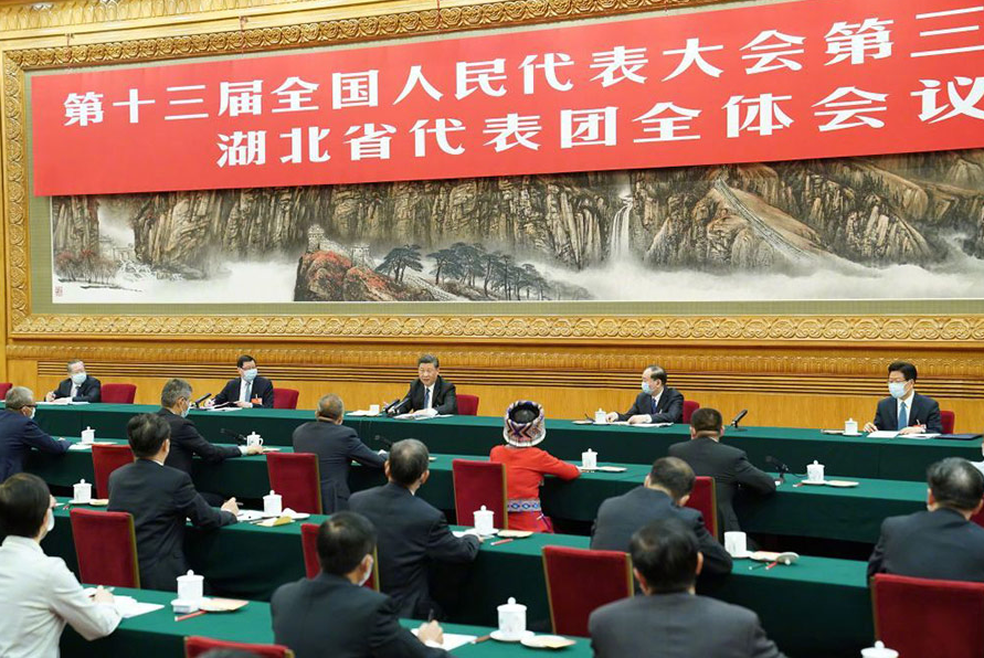5月24日,習近平參加湖北代表團審議。新華社記者 李學仁 攝 根據疫情防控最新形勢,黨中央適時作出了疫情防控常態化的重大判斷。 此次在湖北代表團,習近平總書記進一步指出:要全力做好常態化疫情防控工作,堅持常態化精準防控和局部應急處置有機結合,加強社區精準防控,擴大檢測范圍,不斷鞏固疫情防控成果。 當前,境外疫情擴散蔓延勢頭仍然沒有得到有效遏制,國內個別地區聚集性疫情仍然存在,湖北有時還出現散發零星確診病例,無癥狀感染者每天還有新增。 “針尖大的窟窿能漏過斗大的風。”總書記用這句俗語,意在提醒大家,不能放松警惕、麻痹大意,要時刻繃緊疫情防控這根弦。 正如總書記強調的:“慎終如始、再接再厲,持續抓好外防輸入、內防反彈工作,決不能讓來之不易的疫情防控成果前功盡棄。” 02/搶時間:把政策優勢轉化為發展優勢 作為全國疫情最重、管控時間最長的省份,湖北經濟重振面臨較大困難。 對于這個現實,總書記是這么看的:湖北經濟長期向好的基本面沒有改變,多年積累的綜合優勢沒有改變,在國家和區域發展中的重要地位沒有改變。