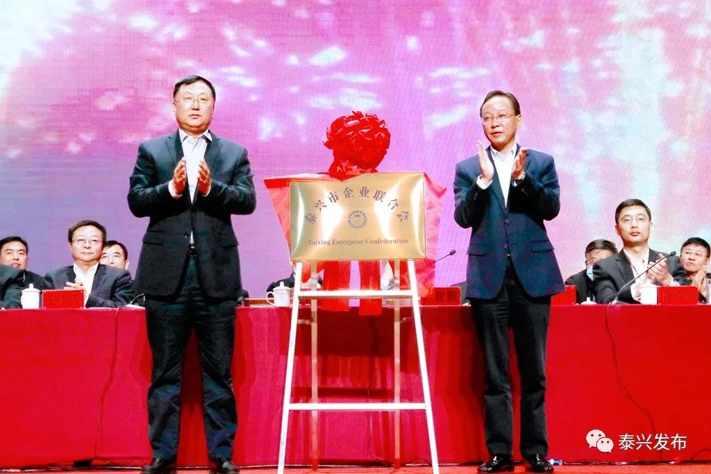 泰興市企業聯合會副會長、濟川藥業黨委書記曹龍祥宣讀倡議書。泰興市企業聯合會副會長、江蘇宏大特鋼董事長朱圣財、新浦化學總經理成登天發言。