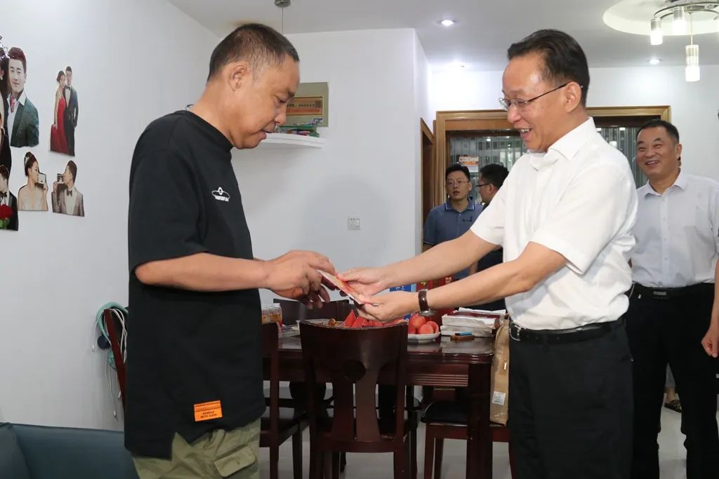 在中國人民解放軍建軍95周年之際,7月26日,市委書記張坤走訪慰問優(yōu)撫對(duì)象,代表市委、市政府送去黨的關(guān)心和關(guān)愛,讓他們共享改革發(fā)展成果。市委常委、政法委書記王建武參加。 一級(jí)視力傷殘軍人曹明建今年56歲,患尿毒癥,常年透析治療。張坤關(guān)切地詢問了他的身體情況、家庭成員、子女就業(yè)、收入來源以及政策保障落實(shí)等情況,并送上了慰問金,叮囑他一定要保重身體,堅(jiān)強(qiáng)面對(duì)生活。 張坤指出,各級(jí)黨委、政府和有關(guān)部門要切實(shí)關(guān)心關(guān)愛優(yōu)撫對(duì)象,不折不扣把各項(xiàng)優(yōu)撫政策落實(shí)到位,為他們提供細(xì)致周到的服務(wù),積極幫助他們解決好生活中的實(shí)際困難和問題,不斷提高服務(wù)保障水平,讓他們充分感受到黨和政府的關(guān)懷與溫暖。 今年58歲的陳同山為一級(jí)傷殘軍人,家中還有一位82歲的老母親。張坤來到老人家中,關(guān)切詢問家庭生活和身體情況,感謝他曾經(jīng)為黨和人民作出的貢獻(xiàn),并送上節(jié)日祝福以及慰問金,同時(shí)叮囑街道及社區(qū)工作人員,要及時(shí)幫助生活困難退伍軍人解決實(shí)際困難,以更貼心的服務(wù)做好擁軍優(yōu)屬工作,使他們更多地享受經(jīng)濟(jì)社會(huì)發(fā)展的成果,切實(shí)增強(qiáng)退役軍人的榮譽(yù)感、歸屬感、獲得感。 為加深軍民魚水情,切實(shí)讓烈士遺屬們感受到黨和政府的關(guān)愛,在“八一”建軍節(jié)來臨之際,7月27日,市委副書記、市長劉文榮來到姚王街道,走訪慰問部分烈屬,表達(dá)對(duì)烈士的崇高敬意和對(duì)烈屬的關(guān)愛之情。 作為烈屬,今年99歲高齡的翟和英老人無兒無女,在街道的幫助下,不僅可以在親戚家居住,也可來到養(yǎng)老院安度晚年。劉文榮與其親屬深入交談,了解老人飲食起居和健康情況。 劉文榮指出,革命烈士為革命事業(yè)所作出的貢獻(xiàn)和犧牲,黨和政府會(huì)永遠(yuǎn)銘記,更不會(huì)忘記革命烈士家屬。親屬要用真心真情細(xì)心照料烈屬的飲食起居,切實(shí)關(guān)注烈屬的身體健康和精神生活,讓其享有更高質(zhì)量的晚年生活。街道也要落實(shí)好各項(xiàng)優(yōu)撫政策,多為烈屬辦實(shí)事、辦好事,解決后顧之憂,真正把黨和政府的溫暖關(guān)懷落到實(shí)處。 “最近身體怎么樣?生活上有什么困難?”在92歲高齡的烈屬趙愛仙家中,劉文榮與其敘家常、問冷暖,對(duì)革命烈士為黨和國家的無私奉獻(xiàn)表示欽佩,對(duì)烈屬表示慰問,并傾聽烈屬訴求,了解烈屬的家庭生活、身體健康以及撫恤政策落實(shí)等情況,囑咐老人保重身體,并表示黨和政府會(huì)一如既往地給予關(guān)心和幫助。各相關(guān)單位要關(guān)心關(guān)愛烈士遺屬,常上門看看、照顧好烈士遺屬生活,讓他們切身感受到黨和政府的溫暖,更好地倡導(dǎo)和弘揚(yáng)烈士精神。 |