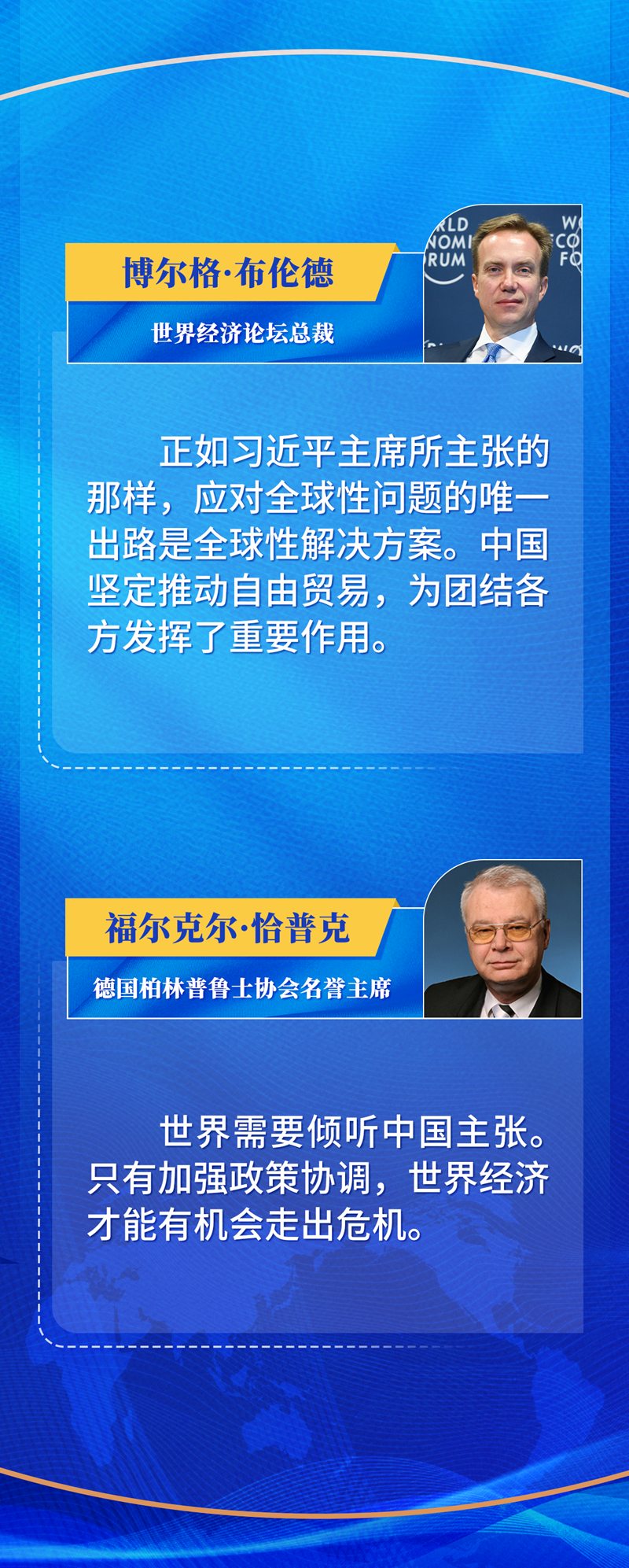 2023年剛開年,世界銀行發布新一期《全球經濟展望》報告,認為全球經濟正“危險地接近陷入衰退的程度”。 放眼當今世界,多國滯脹的風險、多地沖突的硝煙、氣候變化的危害、大國金融政策的負面外溢……全球焦點、熱點、難點問題層出不窮,貧窮、分裂、動蕩有增無減。 怎么看?“當今世界正在經歷百年未有之大變局。這場變局不限于一時一事、一國一域,而是深刻而宏闊的時代之變。”——習近平主席洞悉時代之變,一語點明當今世界大勢的根本特征。 怎么辦?“世界上的問題錯綜復雜,解決問題的出路是維護和踐行多邊主義,推動構建人類命運共同體。”——習近平主席把握歷史規律,展現信心勇氣,為世界共迎挑戰指明方向。 縱觀歷史,人類社會正是在戰勝一次次考驗中成長、在克服一場場危機中發展。只要在歷史前進的邏輯中前進、在時代發展的潮流中發展,我們就能在危機中育新機、于變局中開新局,共同匯聚起戰勝困難的強大力量。 從“充分利用一切機遇,合作應對一切挑戰”,到“人類只有一個地球,人類也只有一個共同的未來”,到“各國不是乘坐在190多條小船上,而是乘坐在一條命運與共的大船上”……習近平主席在達沃斯論壇上生動真誠的話語,傳遞出一個鮮明主張:“團結就是力量,分裂沒有出路。” 今年的達沃斯論壇年會以“在分裂的世界中加強合作”為主題。對習近平主席的主張,世界經濟論壇總裁博爾格·布倫德深表認同。他說,應對全球性問題的出路是全球性解決方案。“中國堅定推動自由貿易,為團結各方發揮了重要作用。”
