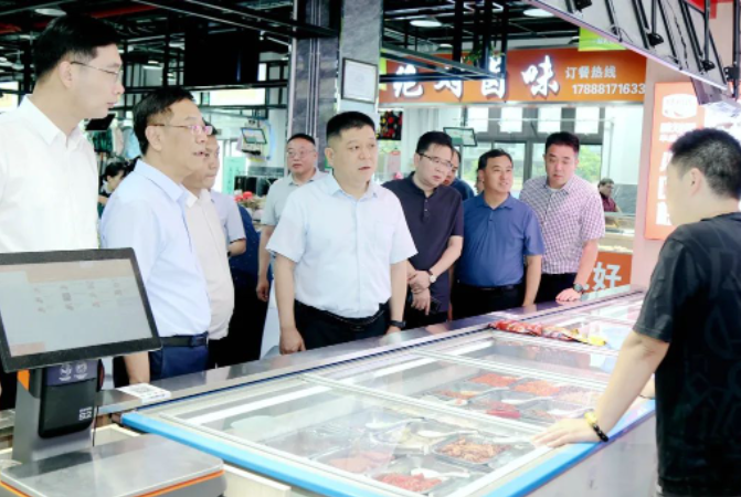城東農(nóng)貿(mào)市場和國慶橋農(nóng)貿(mào)市場均為改造市場,各自覆蓋周邊多個小區(qū),包括肉類、蔬菜類、干貨類、海鮮等區(qū)域,能為百姓提供“一站式”的服務(wù)。“這個市場共有多少攤位?服務(wù)多少人口?”劉文榮走進(jìn)市場各貨物區(qū),與攤主深入交流,認(rèn)真查看市場公共基礎(chǔ)設(shè)施、環(huán)境衛(wèi)生整治等情況,要求緊緊圍繞“干凈、整潔、安全、有序”的原則,不斷強(qiáng)化規(guī)范化、精細(xì)化管理,持續(xù)提升環(huán)境檔次和服務(wù)質(zhì)量,全力打造干凈整潔、誠信經(jīng)營、放心消費(fèi)的農(nóng)貿(mào)市場購物環(huán)境。 劉文榮還來到文江印農(nóng)貿(mào)市場,詳細(xì)詢問市場管理、菜品來源、菜品價格和銷售情況等。文江印農(nóng)貿(mào)市場是集生鮮、美食、便民于一體的鄰里新型農(nóng)貿(mào)市場,打造居民“十分鐘生活圈”,將為周邊市民提供生活服務(wù)、休閑娛樂,成為城南市民新的“菜籃子”“米袋子”。劉文榮希望要進(jìn)一步精心規(guī)劃設(shè)計(jì),借鑒先進(jìn)地區(qū)經(jīng)驗(yàn),完善硬件設(shè)施,科學(xué)合理布局,規(guī)范設(shè)置自產(chǎn)自銷區(qū)和本地特色農(nóng)產(chǎn)品區(qū),為起早貪黑進(jìn)城賣菜的農(nóng)民提供免費(fèi)經(jīng)營場所,解決他們擺攤就業(yè)需求,讓農(nóng)民把生態(tài)農(nóng)產(chǎn)品帶得進(jìn)、賣得出。 劉文榮指出,農(nóng)貿(mào)市場是最基本、最接地氣的民生保障場所,關(guān)系著老百姓的“一日三餐”和日常生活,是一座城市最有煙火氣的地方。不僅市場主體和商戶要做好自身管理,相關(guān)部門也要多俯下身子互相交流,深入研究市場如何管理、攤位怎么布局,以人性化管理回應(yīng)民生關(guān)切,既讓商戶賣得更舒心、更安心,又要讓老百姓買得更方便、更放心,不斷提升老百姓的幸福指數(shù)。 |